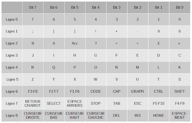 Nous on veut la touche gauche, elle correspond à la ligne 8, donc si on charge A avec 8 et qu’on appelle la routine, on récupère toutes les infos de cette ligne dans A.